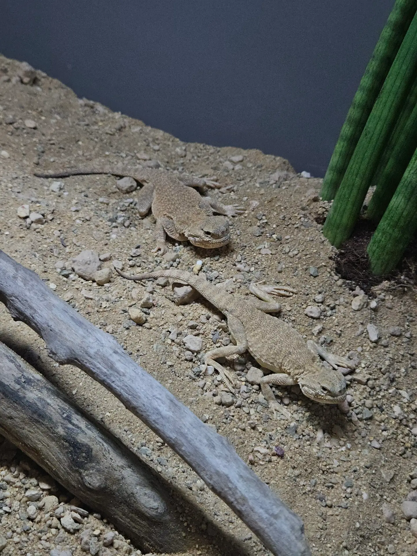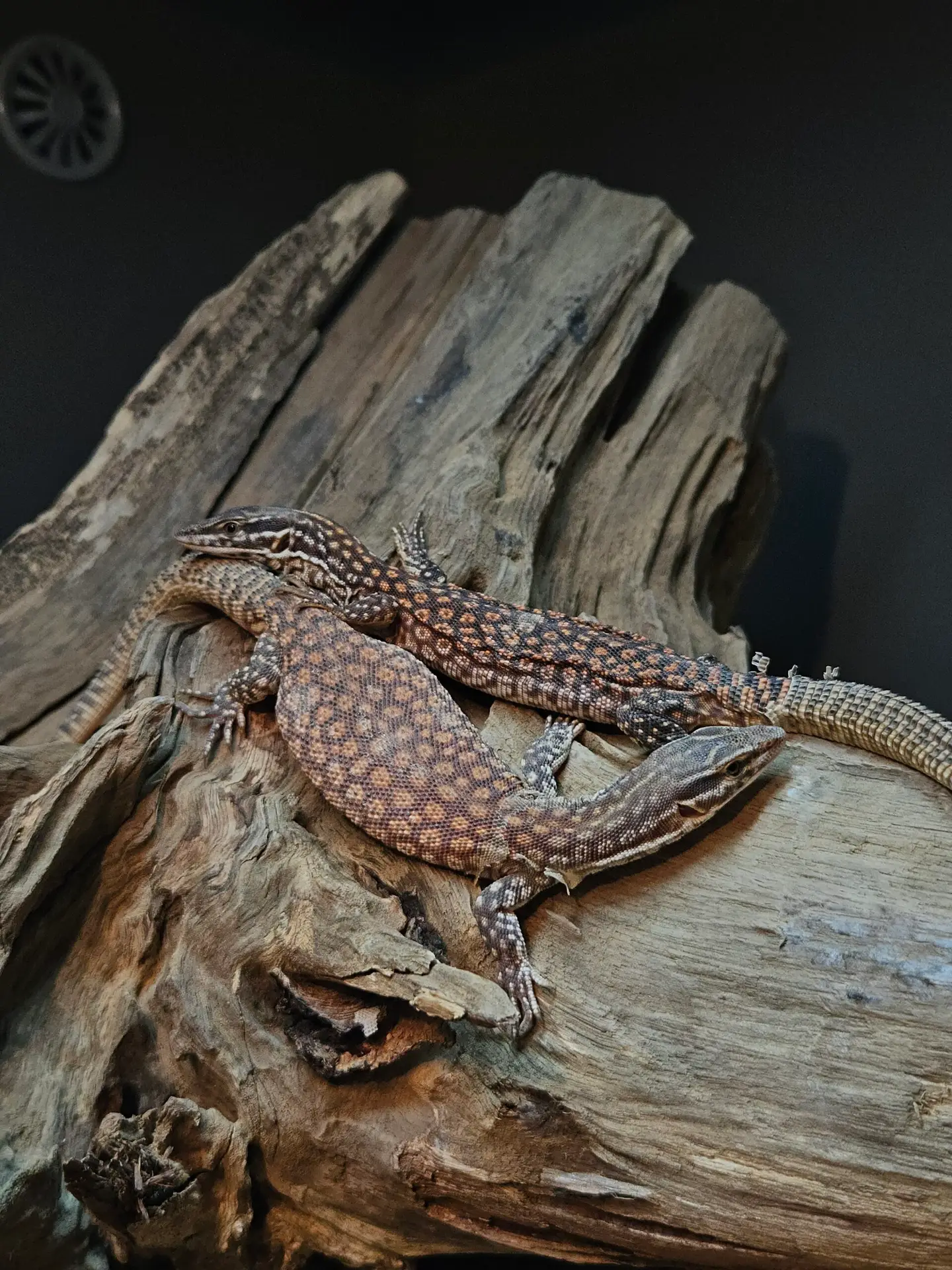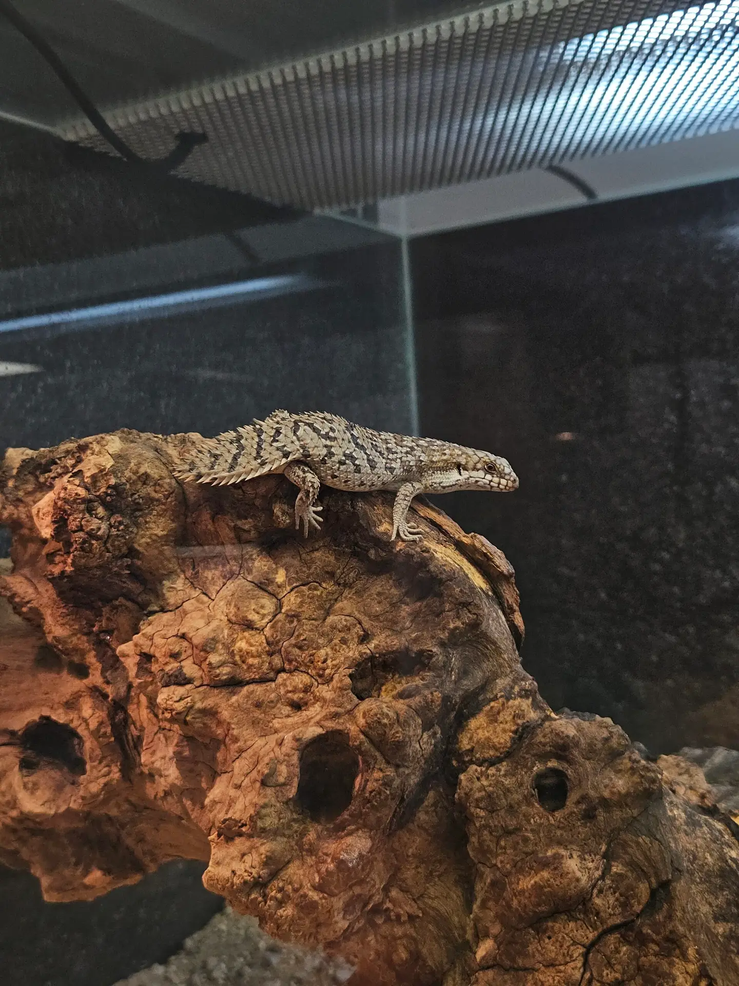 Każde terrarium jest monitorowane niezależnie. Dzięki stałej kontroli parametrów możemy na bieżąco reagować i zapobiegać przegrzaniu, przesuszeniu czy nagłym zmianom warunków. Pozwala nam to także odwzorowywać naturalne cykle pór roku — regulować długość dnia i nocy oraz intensywność oświetlenia, tak aby jaszczurki mogły funkcjonować w rytmie jak najbliższym naturze.